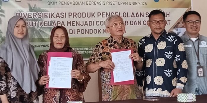 Bengkulu- Lembaga Penelitian dan Pengabdian Masyarakat (LPPM) Universitas Bengkulu (Unib) memberikan bantuan alat pengelolaan sampah sabut kelapa menjadi cocofiber dan cocofeat kepada kelompok UMKM Desa Sri Kuncoro, Kecamatan Pondok Kelapa, Kabupaten Bengkulu Tengah.