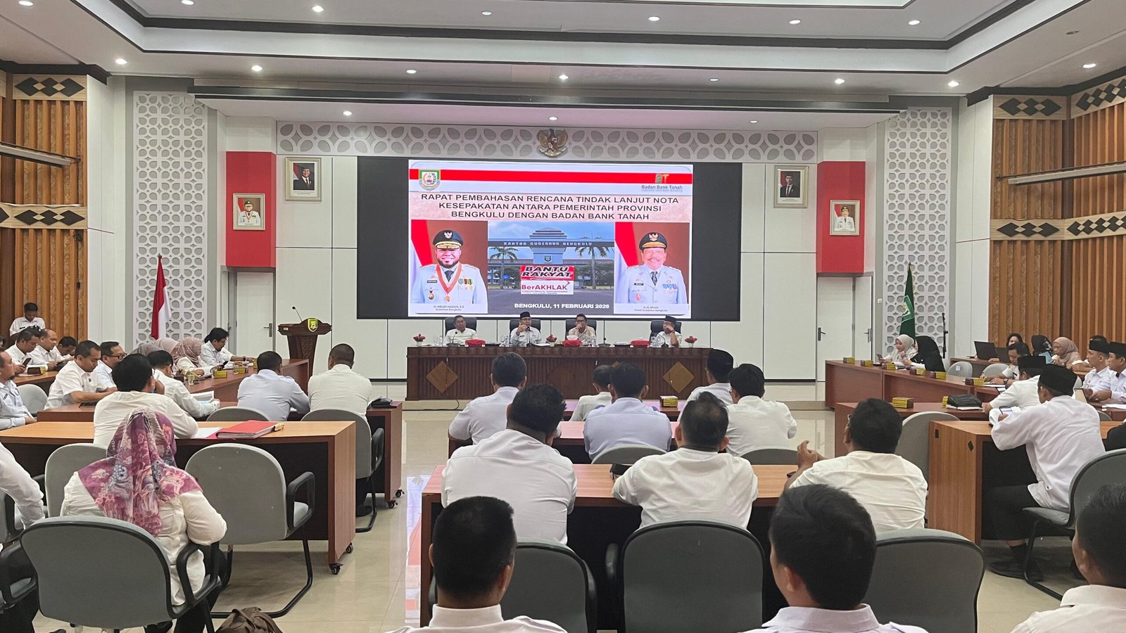 Langkah tersebut dibahas dalam rapat koordinasi bersama Sekretaris Daerah kabupaten/kota dan Kepala Kantor Pertanahan se-Provinsi Bengkulu yang digelar di Aula Pola Merah Putih Kantor Gubernur Bengkulu, Rabu (11/2/2026), sebagai tindak lanjut Nota Kesepahaman (MoU) antara Gubernur Bengkulu dan Kepala Badan Bank Tanah.