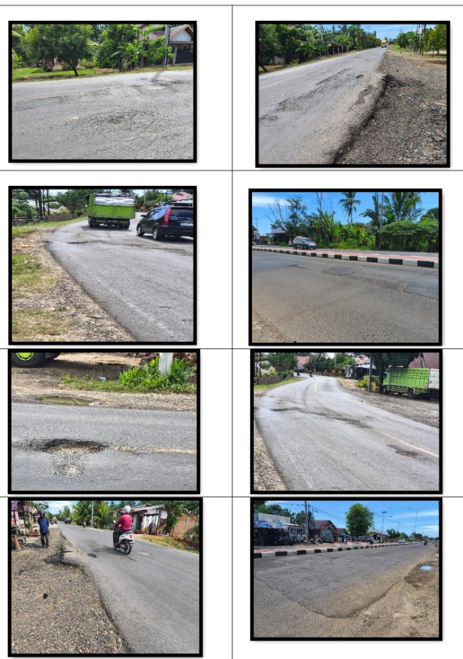 Selain itu, meskipun di beberapa lokasi dilakukan pemotongan area tambalan, proses pengaspalan tidak disertai pemadatan menggunakan alat tandem roller atau baby roller. Area juga tidak dibersihkan dari tanah dan pasir serta tidak dilakukan prime coat. Kondisi ini menyebabkan aspal baru tidak menyatu dengan aspal lama (existing), sehingga kualitas jalan semakin menurun dan cepat mengalami kerusakan.